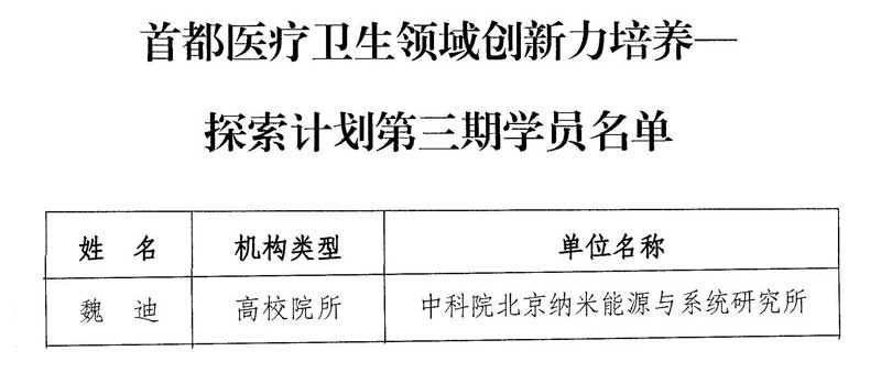 经过函评与面试,探索计划2025(第三期)从近千人选拔了50个医生和10名科研院所的研发人员。中国科学院北京纳米能源与系统研究所魏迪教授成功入选。离子电子学实验室一直致力于用科学技术解决实际问题,魏迪教授将依托探索计划,加强与医疗机构的合作,坚持科技创新面向人民生命健康,强化民生需求牵引和科技供给引领,致力于推出更多惠及民生的科技创新成果。
