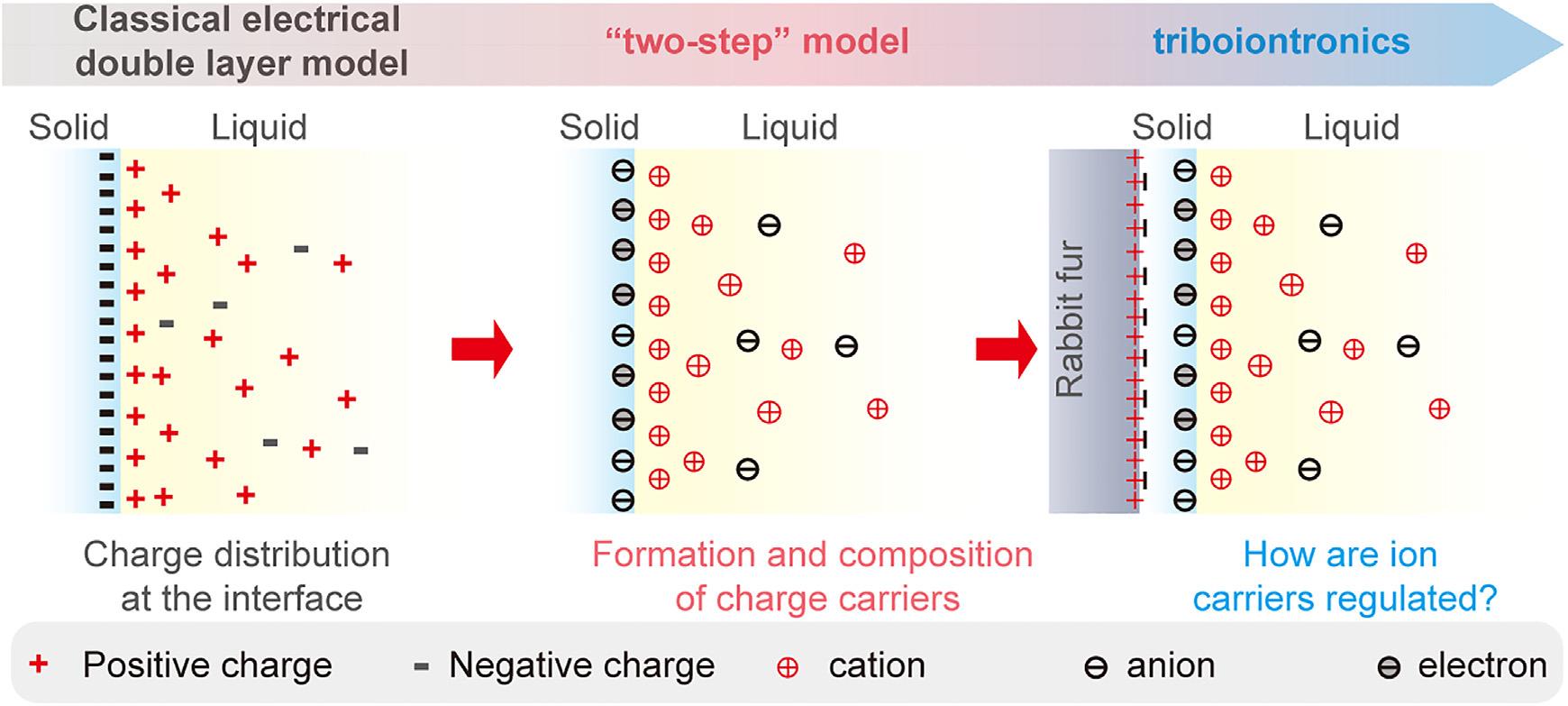 图1 通过接触起电实现界面双电层和离子载体调控的原理图