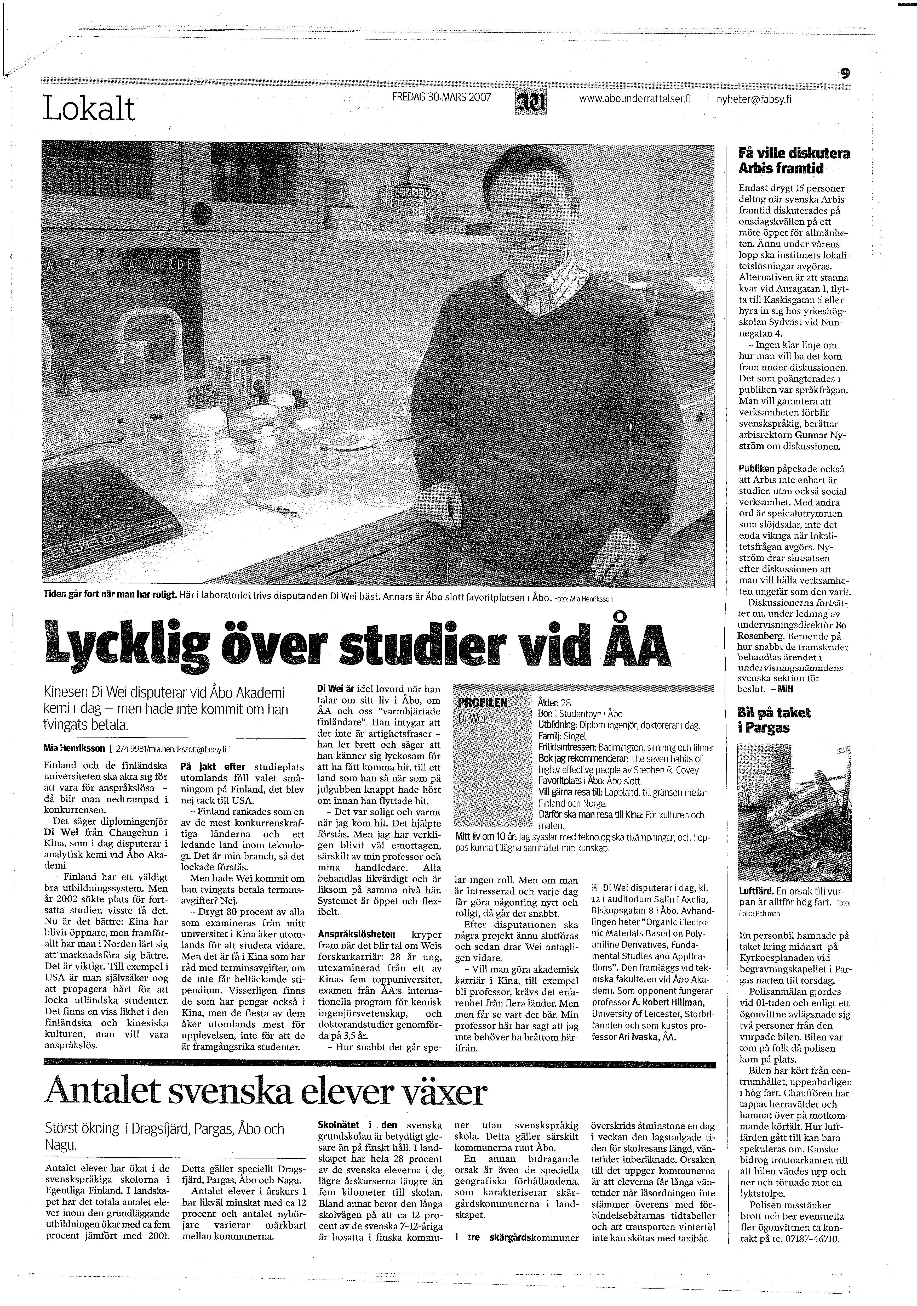 芬兰报纸报道魏迪博士全优成绩提前硕博毕业