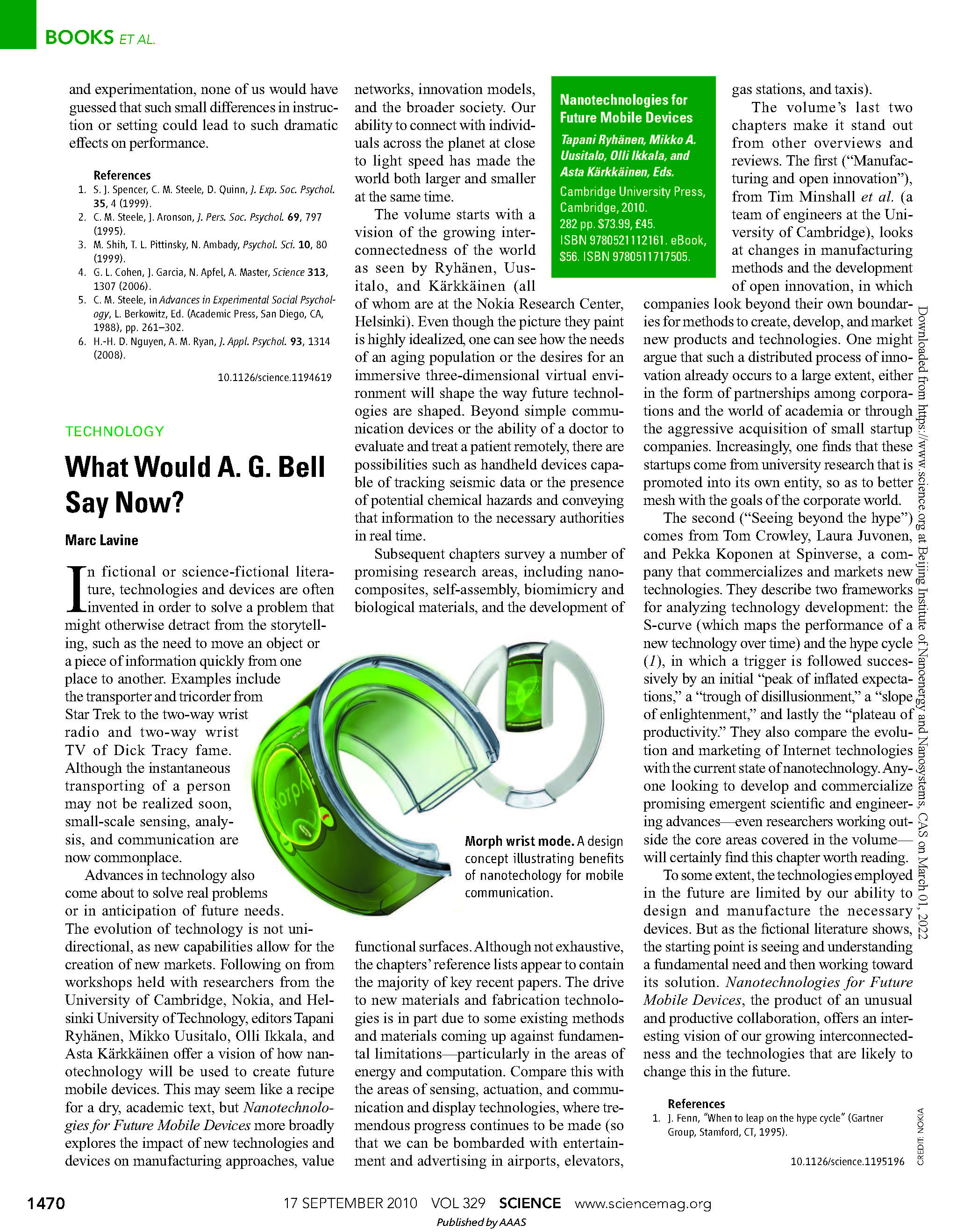 Science期刊对学术专著《Nanotechnologies for Future Mobile Devices》的亮点评论