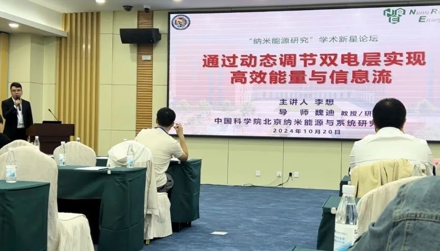 2024年10月18日,中国化学会第三届能源化学青年论坛定于在重庆市召开,会议以“探索双碳新路径 开发能源新体系”为主题,旨在促进我国能源材料化学领域青年学者间的交流与合作,共同探讨能源领域前沿动态及持续发展,推动产业技术开发与应用。本次会议由中国化学会能源化学专业委员会和北京理工大学共同主办,北京理工大学重庆创新中心承办。荣誉主席为李亚栋院士、吴锋院士和潘复生院士,大会主席为黄富强教授、王训教授、曲良体教授和张铁锐研究员。课题组博士生——李想应邀参加做“通过动态调节双电层实现高效能量与信息流”的报告,并获得“Nano Research Energy”学术新星奖金奖。
