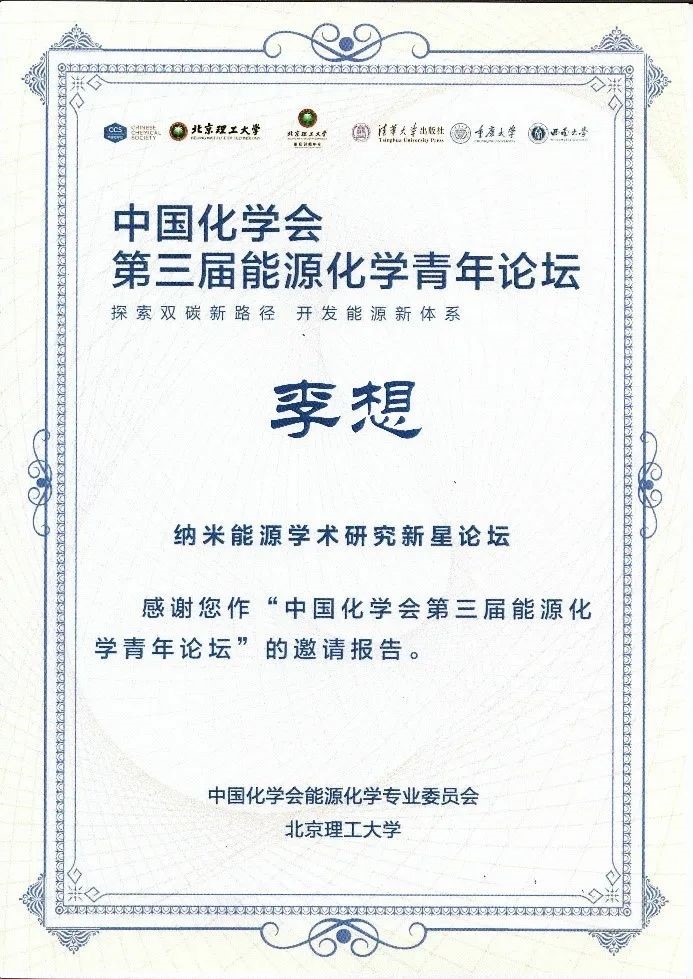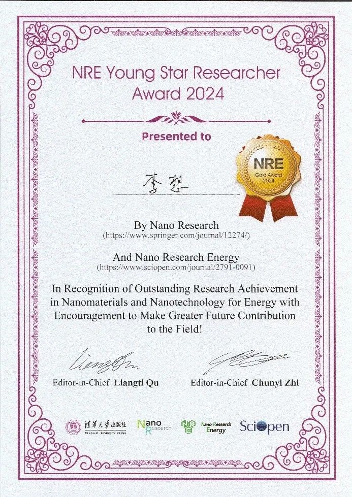 赞!恭喜课题组博士生——李想获得“Nano Research Energy”学术新星奖金奖