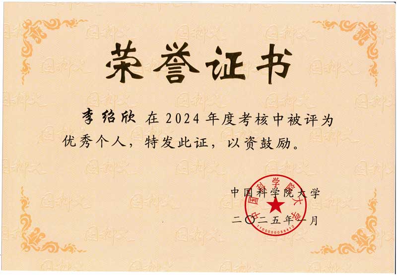 课题组李绍欣博士荣获中国科学院大学2024年度“优秀个人”称号。