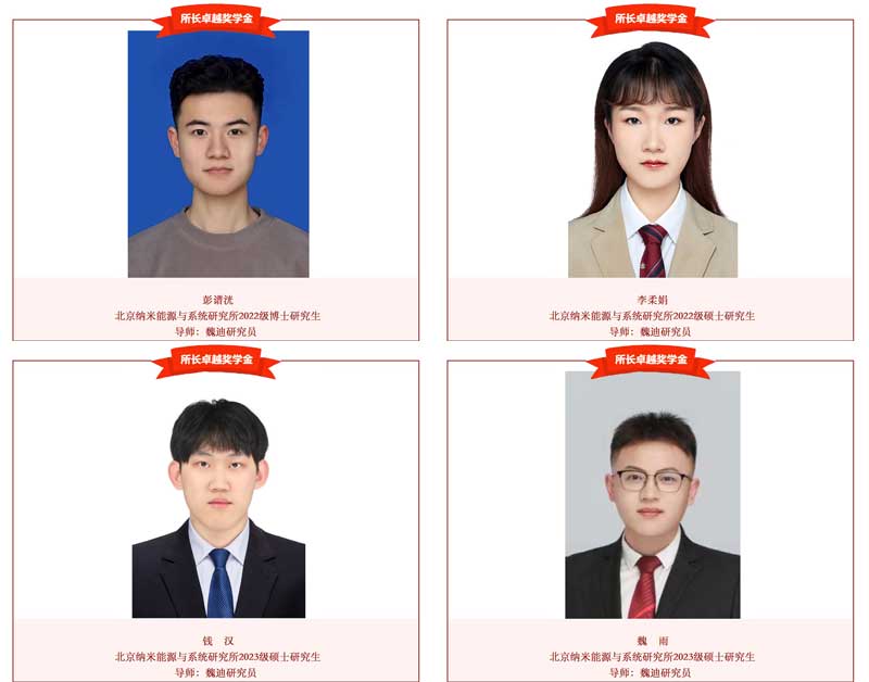 2024年,课题组2022届两位博士研究生:彭谱洸、李想,2022届两位硕士研究生:李柔娟、刘嘉晋,2023届两位硕士研究生:钱汉、魏雨,已全员获得了朱李月华奖学金、研究生国家奖学金、所长卓越奖学金等众多研究生奖学金,获奖率达100%。