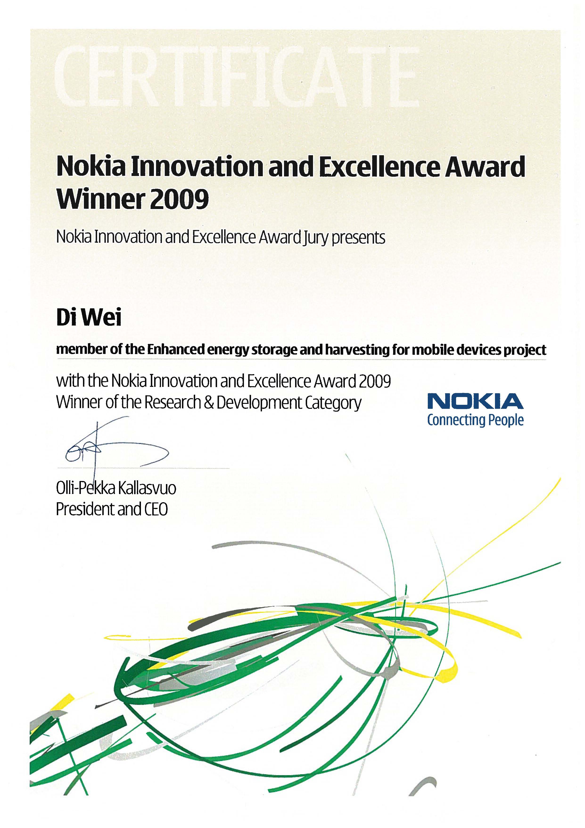 诺基亚研发全球创新一等奖